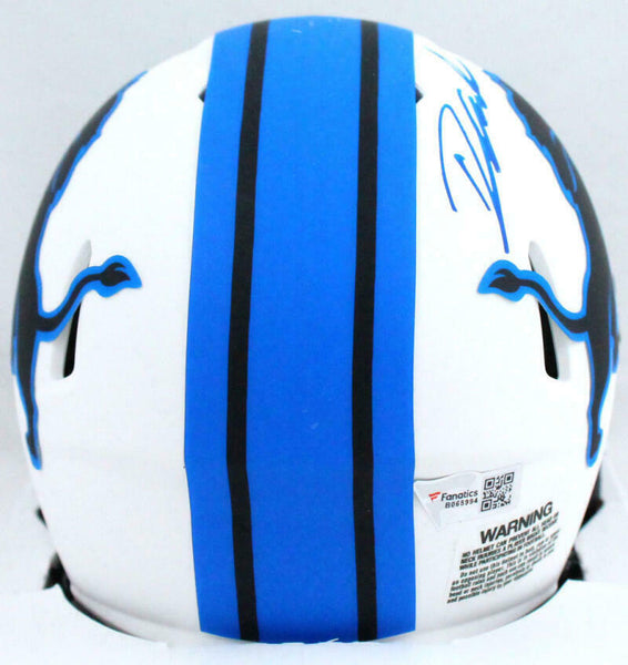 D'Andre Swift Autographed Detroit Lions Lunar Speed Mini Helmet-Fanatics *Blue This is a hand autograph of D'Andre Swift of the Detroit Lions on a Riddell Football Lunar Speed Mini Helmet. This item has a Fanatics Authentication and comes with a numbered sticker hologram. You can view this item on the both the Fanatics Authentication website, it shows when and where the item was signed. It was signed either at a public autograph appearance or a private signing. This is a stock photo of the item. Although you may not receive this exact item, the item you receive is virtually identical and brand new in great shape.