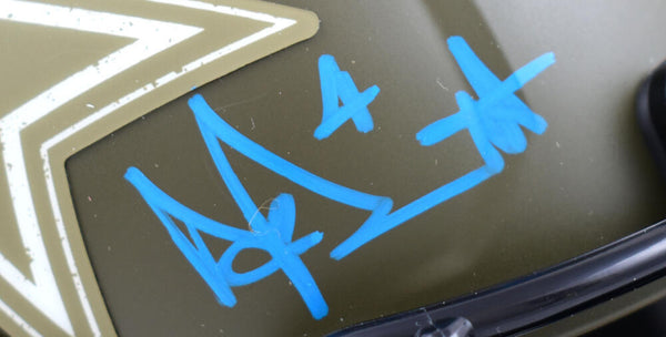 Dak Prescott Autographed Dallas Cowboys Salute to Service Speed Mini Helmet-Beckett W Hologram *Blue This is a Hand Autographed Mini Helmet of Rayne Dakota "Dak" Prescott of The Dallas Cowboys. This is a Riddell Football Salute to Service Speed Mini Helmet. This item has a Beckett Witnessed Authentication, which Comes with a Beckett #'ed hologram and a QR code for verification. You can view this item on the Beckett website and it shows when and where the item was signed. It was signed either at a public autograph appearance or a Private Signing. This is a stock photo of the item. Although you may not receive this exact item, the item you receive is virtually identical and brand new in great shape.