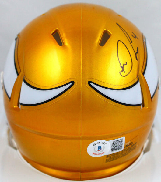 Dalvin Cook Signed Vikings Flash Speed Mini Helmet #4-Beckett W Hologram *Black This is an Dalvin Cook of the Minnesota Vikings hand autographed Riddell Flash Speed mini helmet. It has a Beckett Witnessed Authentication, which comes with a Beckett numbered hologram and a QR code for verification. You can view this item on the Beckett website and it shows when and where the item was signed. It was signed either at a public autograph appearance or a private signing. This is a stock photo of the item. Although you may not receive this exact item, the item you receive is virtually identical, brand new, and in great shape.