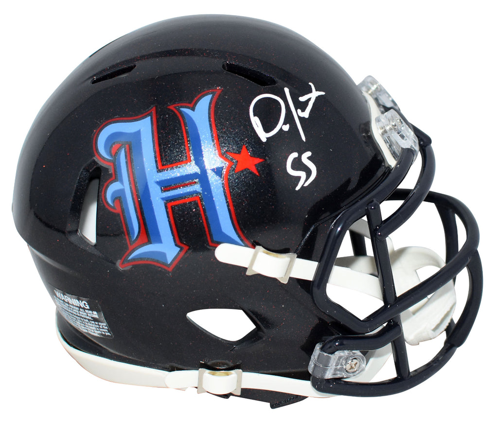 Danielle Hunter, Pro Bowl defensive end for the Houston Texans, has hand signed this Texans Riddell Speed mini helmet at a private signing. This item is authenticated by Beckett Authentication Services and was signed in the presence of one of their representatives. Their tamper-evident hologram featuring a QR code and serial number is on the item. The authenticity can be verified online by entering the serial number or scanning the QR code.Item pictured may not be the exact item you will receive. It will be similar quality, and we guarantee your satisfaction.