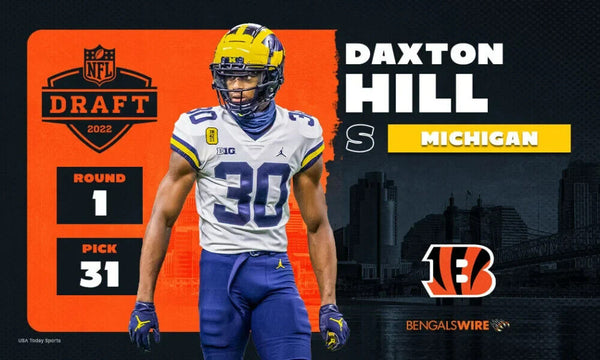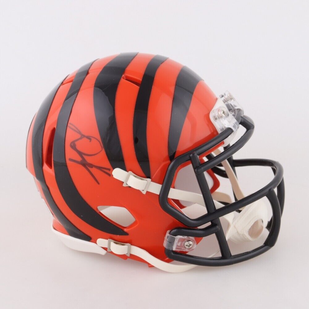 Riddell Cincinnati Bengals Speed mini helmet. Hand-signed by Daxton Hill.The lot / autograph(s) includes an official Beckett Authentication Services serially numbered hologram for authenticity purposes. The signing of this item was witnessed by Beckett.Authentication: Beckett Hologram