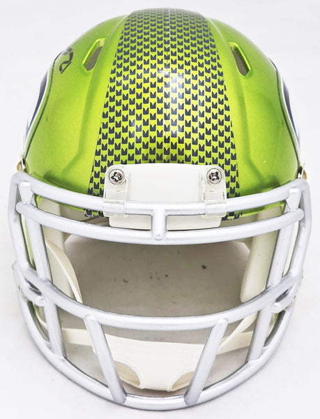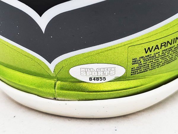 This is a Seattle Seahawks Flash Green Speed Mini Helmet that has been hand signed by Devon Witherspoon. The Flash helmets are delicate and may have some marks or scratches on them. This item was signed in the presence of a Mill Creek Sports representative and comes with their serial numbered hologram and matching certificate of authenticity.