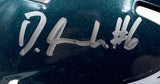 Featured is a Devonta Smith signed Philadelphia Eagles speed mini helmet. This helmet was hand signed by Smith and comes with the Fanatics hologram and certificate of authenticity. Included with this helmet is a Super Bowl 59 acrylic display case that features a mahogany base. This helmet would make a great addition to any sports memorabilia collection! SPECIFICATIONS Autographed By: Devonta Smith Team: Philadelphia Eagles Sport: Football Authentication: Fanatics Authentic