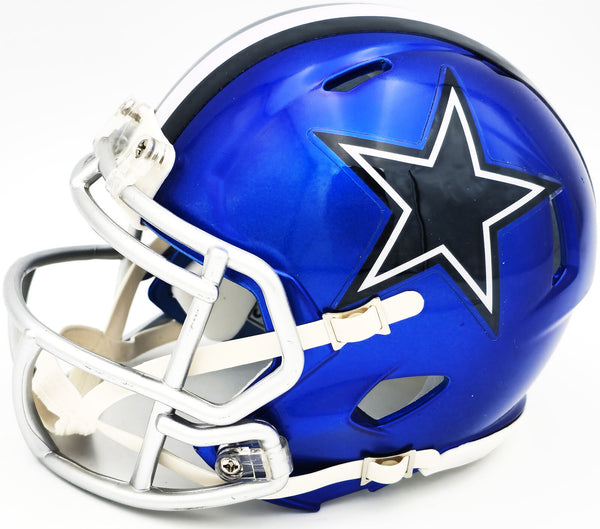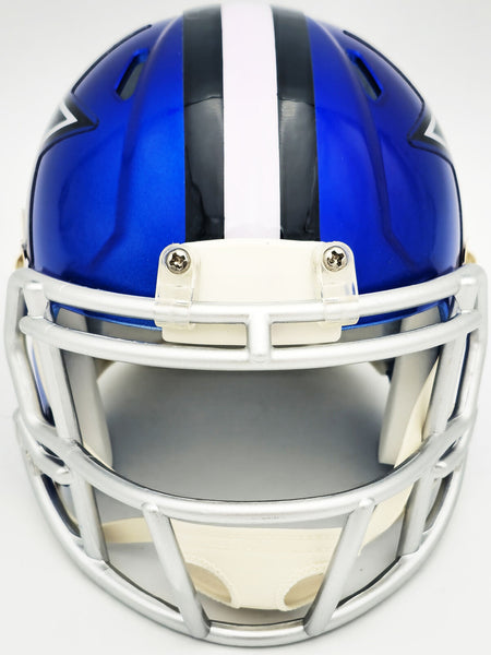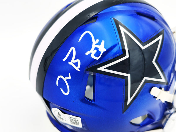 This is a Dallas Cowboys Flash Blue Speed Mini Helmet that has been hand signed by Dez Bryant. The Flash helmets are delicate and may have some marks or scratches on them. This item has been witnessed and certified authentic by Beckett Authentication (BAS) and comes with their tamper-proof witness sticker.