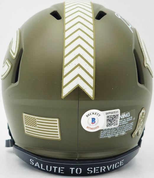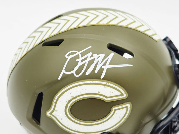This is a Chicago Bears Army Green Salute to Service Speed Mini Helmet that has been hand signed by DJ Moore. This item has been witnessed and certified authentic by Beckett Authentication (BAS) and comes with their tamper-proof witness sticker.