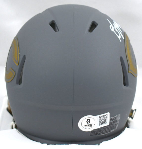 This is a hand autograph of D.J. Moore of the Chicago Bears on a Riddell Football Slate Speed Mini Helmet. This item has a Beckett Witnessed Authentication, which comes with a numbered hologram and a QR code for verification. You can view this item on the Beckett Authentication website and it shows when and where the item was signed. It was signed either at a public autograph appearance or a private signing. This is a stock photo of the item. Although you may not receive this exact item, the item you receive is virtually identical and brand new in great shape. This is a hand autograph of D.J. Moore of the Chicago Bears on a Riddell Football Slate Speed Mini Helmet. This item has a Beckett Witnessed Authentication, which comes with a numbered hologram and a QR code for verification. You can view this item on the Beckett Authentication website and it shows when and where the item was signed. It was signed either at a public autograph appearance or a private signing. This is a stock photo of the item. Although you may not receive this exact item, the item you receive is virtually identical and brand new in great shape.