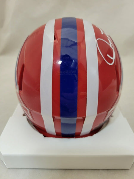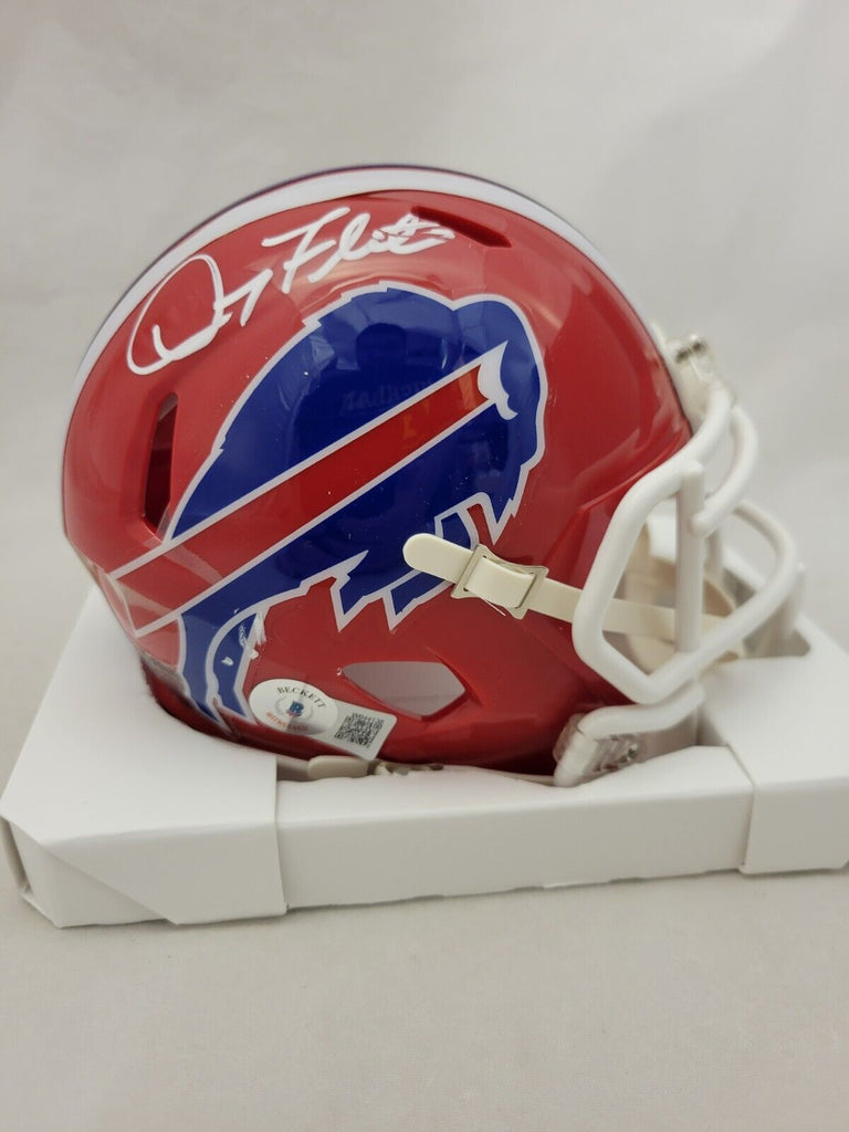 DOUG FLUTIE AUTOGRAPHED BUFFALO BILLS THROWBACK SPEED MINI HELMET WITH BECKETT QR COATHIS MEANS THE HELMET WAS SIGNED WITH A BECKETT REPRESENTATIVE PRESENT SO YOU CAN BE 100% CERTAIN ITS THE REAL THING.