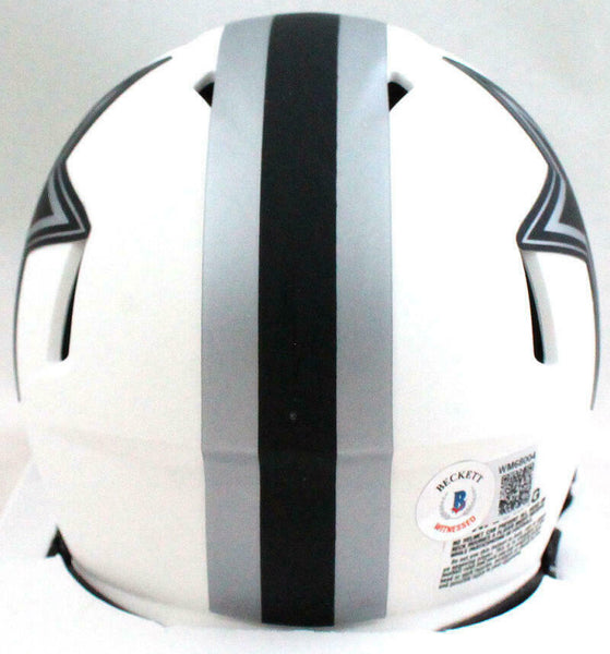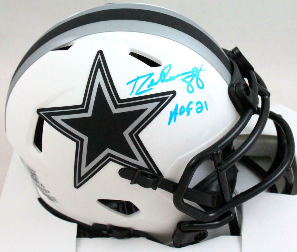 Drew Pearson Autographed Dallas Cowboys Lunar Speed Mini Helmet w/ HOF- Beckett Witness Hologram *Blue This is a hand autograph of Drew Pearson of the Dallas Cowboys on a Riddell Football Lunar Speed mini helmet inscribed with "HOF". This item has a Beckett Witnessed Authentication, which comes with a numbered hologram and a generic Beckett Certificate of Authenticity. You can view this item on the Beckett Authentication website and it shows when and where the item was signed. It was signed either at a public autograph appearance or a private signing. This is a stock photo of the item. Although you may not receive this exact item, the item you receive is virtually identical and brand new in great shape.