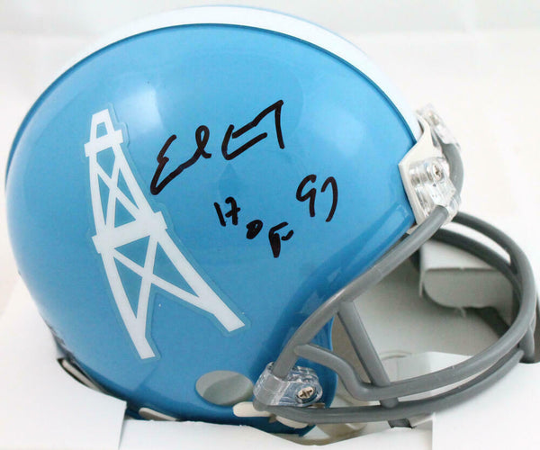 This is an Earl Campbell of the Houston Oilers hand autographed Riddell football mini helmet. This item has a James Spence Witnessed Authentication, which comes with a JSA numbered sticker and a matching Certificate of Authenticity. You can view this item on the SpenceLOA website. It was signed either at a public autograph appearance or a private signing. This is a stock photo of the item. Although you may not receive this exact item, the item you receive is virtually identical, brand new, and in great shape. This is an Earl Campbell of the Houston Oilers hand autographed Riddell football mini helmet. This item has a James Spence Witnessed Authentication, which comes with a JSA numbered sticker and a matching Certificate of Authenticity. You can view this item on the SpenceLOA website. It was signed either at a public autograph appearance or a private signing. This is a stock photo of the item. Although you may not receive this exact item, the item you receive is virtually identical, brand new, and in great shape.