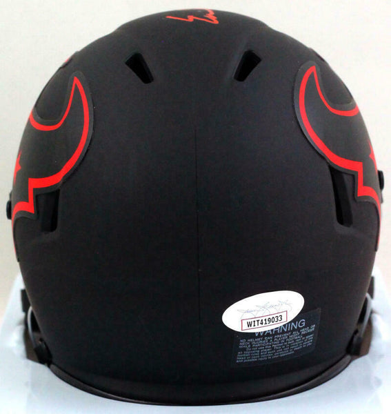 Earl Campbell Autographed Houston Texans Eclipse Mini Helmet w/ HOF- JSA W *Red *Across Top This is an Earl Campbell of the Houston Texans hand autographed Riddell Football Eclipse Speed Mini Helmet inscribed with HOF 91. This item has a James Spence Witnessed Authentication, which comes with a JSA numbered sticker and a matching JSA Certificate of Authenticity. You can view this item on the SpenceLOA website and it shows when and where the item was signed. It was signed either at a public autograph appearance or a private signing. This is a stock photo of the item. Although you may not receive this exact item, the item you receive is virtually identical, brand new, and in great shape.