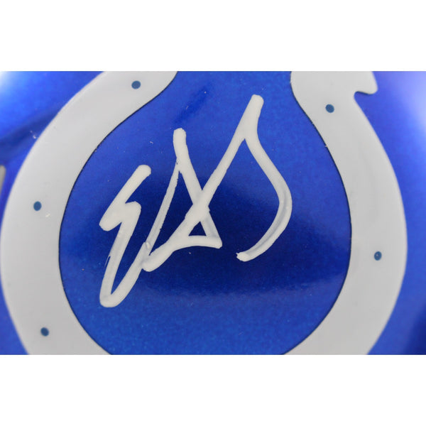 The number in the listing title is just an inventory sku for our records and is not the authentication number. The item pictured is a stock photo unless otherwise noted. This is an Indianapolis Colts Flash Mini Helmet that was personally autographed by Edgerrin James. Includes a certificate of authenticity from Beckett Authentication Services (BAS) and Denver Autographs. FREE SHIPPING within the USA on orders over $10!