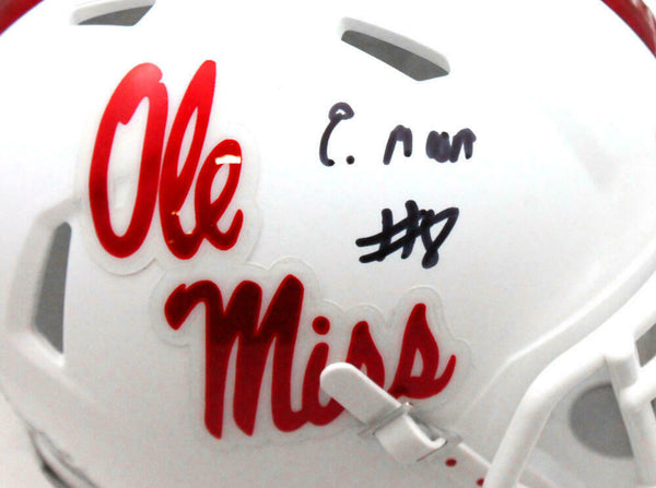 Elijah Moore Autographed Ole Miss Speed Mini Helmet- Beckett W Hologram *Black This is a Hand Autographed Mini Helmet of Elijah Moore of the Ole Miss Rebels. This is a Riddell Football Speed Mini Helmet. This item has a Beckett Witnessed Protection Authentication, which comes with a numbered hologram and generic Certificate of Authenticity. You can view this item on the Beckett website, it shows when and where the item was signed. It was signed either at a public autograph appearance or a Private Signing. This is a stock photo of the item. Although you may not receive this exact item, the item you receive is virtually identical, brand new, and in great shape.