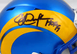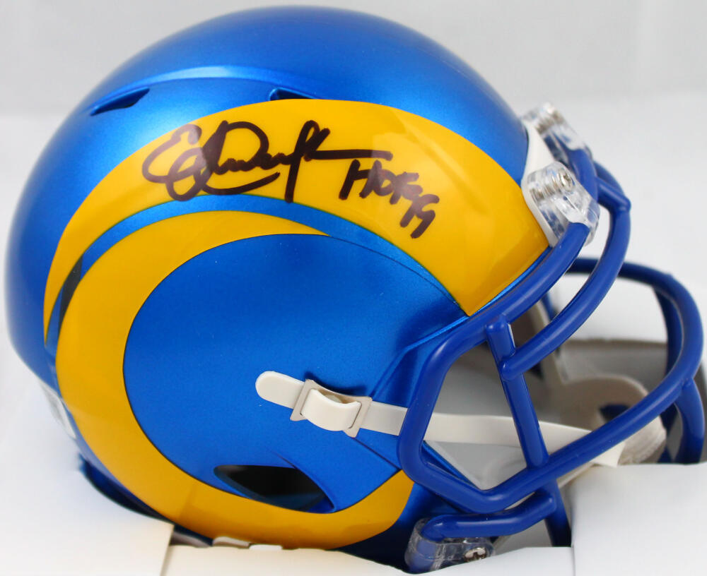 Eric Dickerson Autographed Los Angeles Rams Speed Mini Helmet w/HOF-Beckett W Hologram *Black This is an Eric Dickerson of the Los Angeles Rams hand autographed Riddell football Speed mini helmet. This item has a Beckett Witnessed Authentication, which comes with a numbered hologram and a QR code for verification. You can view this item on the Beckett Authentication website and it shows when and where the item was signed. It was signed either at a public autograph appearance or a private signing. This is a stock photo of the item. Although you may not receive this exact item, the item you receive is virtually identical, brand new, and in great shape.