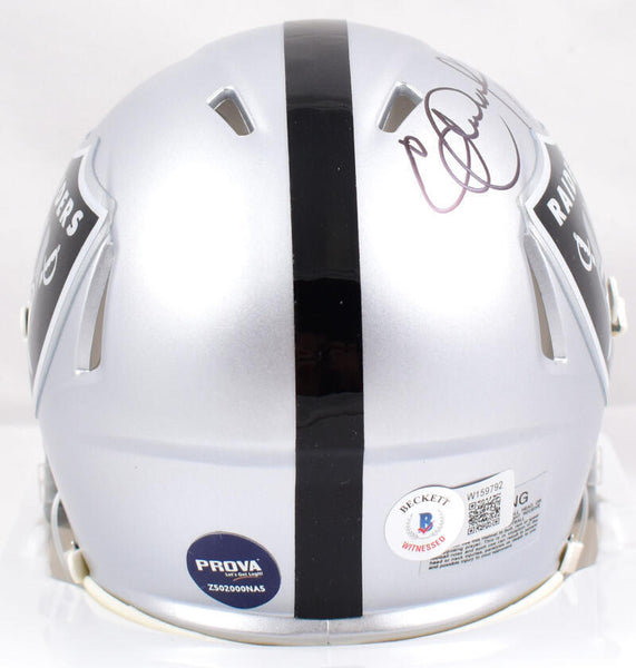 Eric Dickerson Autographed Raiders Speed Mini Helmet W/ HOF *thin - Beckett W Hologram *Black This is a Hand Autograph of Eric Dickerson of the Raiders on a Riddell Football Speed Mini Helmet and inscribed with HOF 99. This item has a Beckett Witness Authentication, which comes with a Beckett #'ed tamper-proof hologram and a QR code for verification. You can view this item on the Beckett Authentication website and it shows when and where the item was signed. It was signed either at a public autograph appearance or a private signing. This is a stock photo of the item. Although you may not receive this exact item, the item you receive is virtually identical and brand new in great shape.