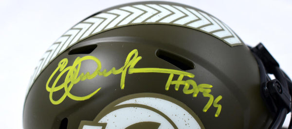 Eric Dickerson Signed Los Angeles Rams Salute to Service Speed Mini Helmet w/HOF-Beckett W Hologram *Yellow This is an Eric Dickerson of the Los Angeles Rams hand autographed Riddell football Salute to Service speed mini helmet. Inscribed HOF. This item has a Beckett Witnessed Authentication, which comes with a Beckett numbered sticker hologram and a QR code for verification. You can view this item on the Beckett Authentication website, it shows when and where the item was signed. It was signed either at a public autograph appearance or a private signing. This is a stock photo of the item. Although you may not receive this exact item, the item you receive is virtually identical, brand new, and in great shape.
