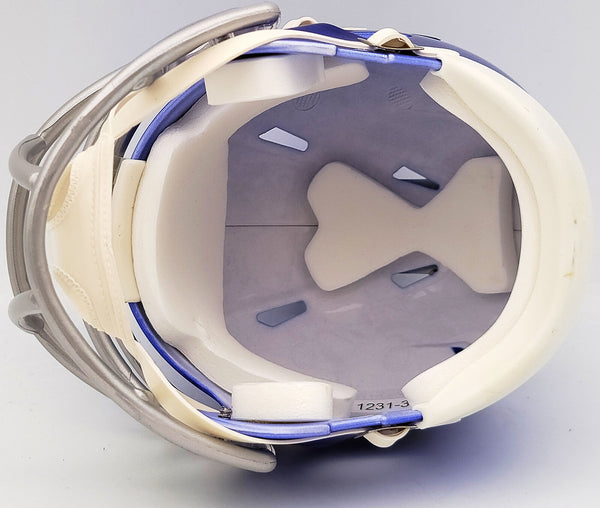 This is a Dallas Cowboys Flash Blue Speed Mini Helmet that has been hand signed by Ezekiel Elliott. The Flash helmets are delicate and may have some marks or scratches on them. This item has been certified authentic by Beckett Authentication (BAS) and comes with their tamper-proof QR Code sticker that can be verified on the Beckett-authentication.com.