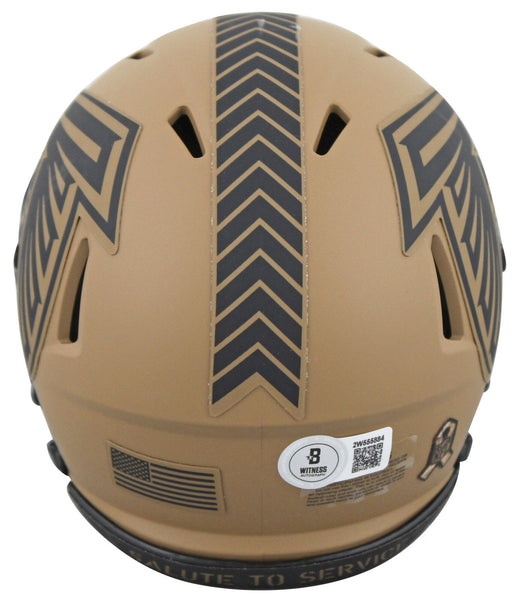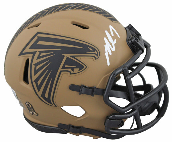 This Autographed Alternate 2023 Salute To Service II Riddell Speed Mini Helmet has been Personally Signed by Michael Vick of the Atlanta Falcons. This item is 100% Authentic to include a hologram by Beckett Authentication Services. This item will come with an affixed Beckett Authentication Services (BAS) authentication sticker, which includes a scannable QR code to verify authenticity. Please note that Beckett no longer provides serial-numbered COA cards, and the attached BAS sticker will serve as the complete authentication for this item. This is a BAS Witnessed Protection Program item which means a Beckett Authentication Service representative was present when this item was being signed. We conducted an autograph signing with Michael Vick where multiples of the same item were signed. While the photographs are representative of this item, the size, placement and strength of the signature may vary. Each item is hand signed, therefore, each autograph is unique. This item can be verified through BAS Witnessed.