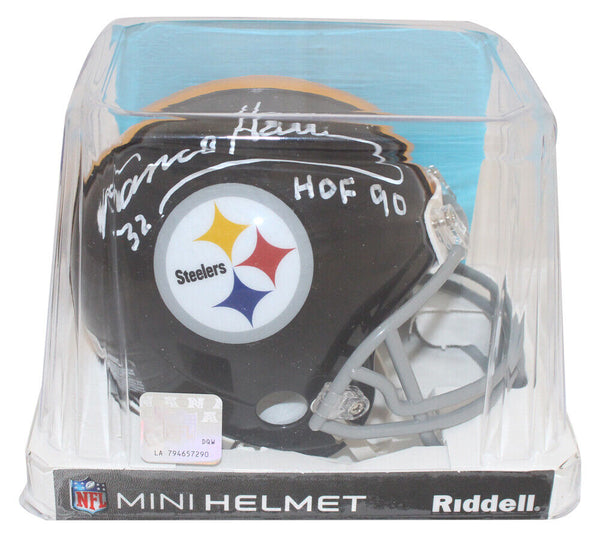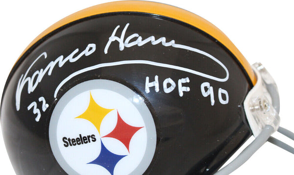 Franco Harris Signed Pittsburgh Steelers VSR4 63-76 Mini Helmet HOF BAS 39667 The number in the listing title is just an inventory sku for our records and is not the authentication number. The item pictured is a stock photo unless otherwise noted. This is a Pittsburgh Steelers 63-76 VSR4 mini helmet that was personally autographed by Franco Harris with HOF inscription. Includes a certificate of authenticity from Beckett Authentication Services (BAS) and Denver Autographs.