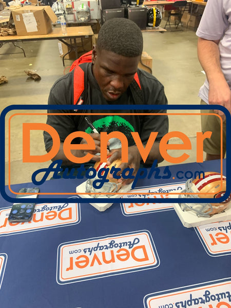 The number in the listing title is just an inventory sku for our records and is not the authentication number. The item pictured is a stock photo unless otherwise noted. This is a San Francisco 49ers Mini Helmet that was personally autographed by Frank Gore. Includes a certificate of authenticity from Beckett Authentication Services (BAS) and Denver Autographs.