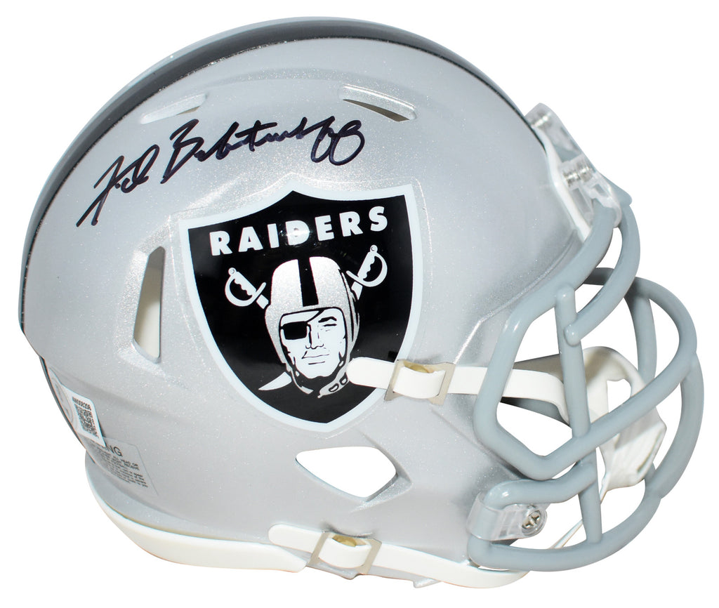 Fred Biletnikoff, former Hall of Fame wide receiver for the Oakland Raiders, has hand signed this Raiders Riddell Speed mini helmet at a private signing. This item is authenticated by Beckett Authentication Services and was signed in the presence of one of their representatives. Their tamper-evident hologram featuring a QR code and serial number is on the item. The authenticity can be verified online by entering the serial number or scanning the QR code.Item pictured may not be the exact item you will receive. It will be similar quality, and we guarantee your satisfaction.