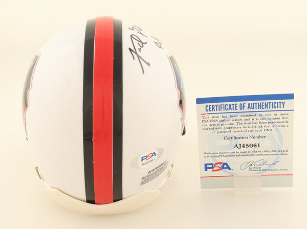 Riddell Hall of Fame Logo Speed Mini Helmet. Hand-signed and inscribed by Oakland Raiders Receiver Fred Biletnikoff.The autograph(s) includes an official PSA/DNA hologram and matching COA for authenticity purposes.Authentication: PSA COA