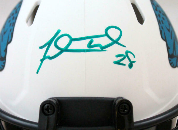 Fred Taylor Autographed Jacksonville Jaguars Lunar Speed Mini Helmet-Beckett W Hologram *Teal This is a hand autograph of Fred Taylor of the Jacksonville Jaguars on a Riddell Football Lunar Speed Mini Helmet. This item has a Beckett Witnessed Authentication, which comes with a numbered sticker hologram and a generic Beckett Certificate of Authenticity. You can view this item on the Beckett Authentication website, it shows when and where the item was signed. It was signed either at a public autograph appearance or a private signing. This is a stock photo of the item. Although you may not receive this exact item, the item you receive is virtually identical and brand new in great shape.