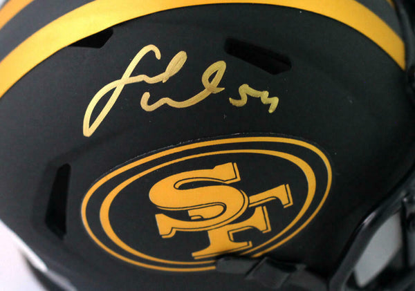 Fred Warner Autographed San Francisco 49ers Eclipse Speed Mini Helmet - Beckett W Auth *Gold This is a hand autograph of Fred Warner of the San Francisco 49ers on a Riddell Football Eclipse Speed Mini Helmet. This item has a Beckett Witnessed Authentication, which comes with a numbered sticker and a matching Beckett Certificate of Authenticity. You can view this item on the Beckett Authentication website, it shows when and where the item was signed. It was signed either at a public autograph appearance or a private signing. This is a stock photo of the item. Although you may not receive this exact item, the item you receive is virtually identical and brand new in great shape.