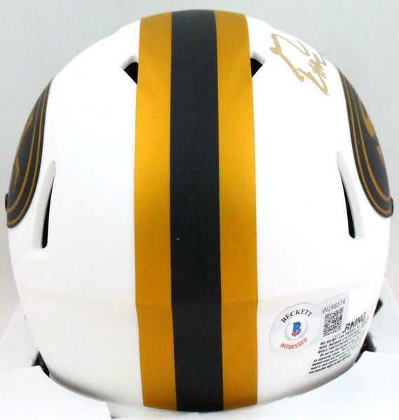George Kittle Autographed 49ers Lunar Speed Mini Helmet- Beckett W Hologram *Gold This is a George Kittle of the San Francisco 49ers hand autographed Riddell Lunar Speed mini helmet. This item has a Beckett Witnessed Authentication, which comes with a numbered hologram and a generic Beckett Certificate of Authenticity. You can view this item on the Beckett website, it shows when and where the item was signed. It was signed either at a public autograph appearance or a private signing. This is a stock photo of the item. Although you may not receive this exact item, the item you receive is virtually identical, brand new, and in great shape.