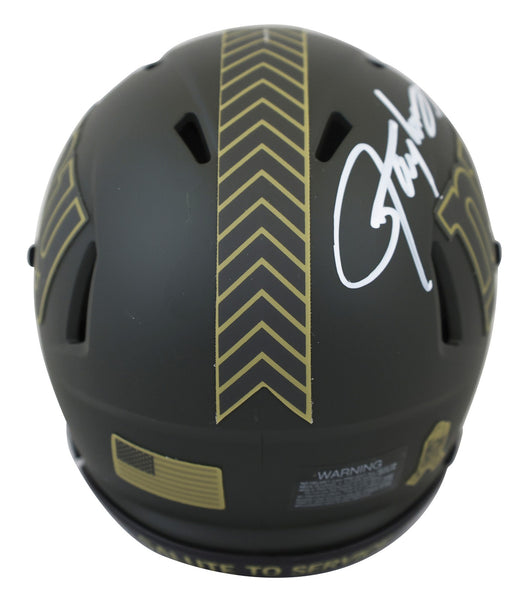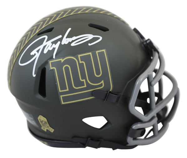 This Autographed Alternate 2025 Salute to Service IV Speed Mini Helmet has been Personally Signed by Lawrence Taylor of the New York Giants. This item is 100% Authentic to include a hologram by Beckett Authentication Services. This item will come with an affixed Beckett Authentication Services (BAS) authentication sticker, which includes a scannable QR code to verify authenticity. Please note that Beckett no longer provides serial-numbered COA cards, and the attached BAS sticker will serve as the complete authentication for this item. This is a BAS Witnessed Protection Program item which means a Beckett Authentication Service representative was present when this item was being signed. We conducted an autograph signing with Lawrence Taylor where multiples of the same item were signed. While the photographs are representative of this item, the size, placement and strength of the signature may vary. Each item is hand signed, therefore, each autograph is unique. This item can be verified through BAS Witnessed.