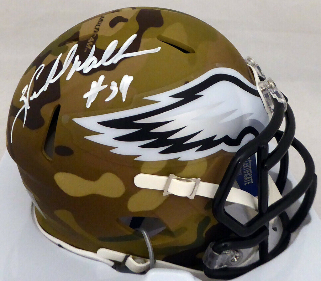 This is a Philadelphia Eagles Speed Camo Mini Helmet that has been hand signed by Herschel Walker. This item has been certified authentic by Beckett Authentication (BAS) and comes with their serial numbered sticker and matching certificate of authenticity. NOTE: Because each Camo helmet is hand-dipped using water-transfer technology there may be slight imperfections.