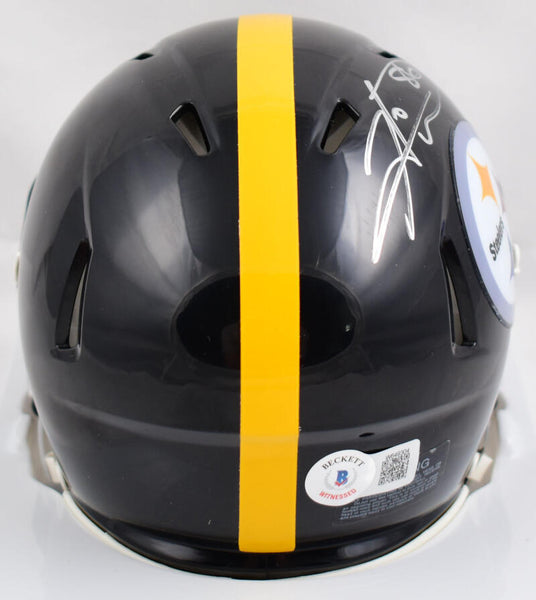 Hines Ward Autographed Pittsburgh Steelers Speed Mini Helmet - Beckett W Hologram *Silver *thin This is a hand autographed Helmet of Hines Ward of the Pittsburgh Steelers. This is a Riddell Football Speed Mini Helmet. This item has a Beckett Witnessed Authentication, which comes with a numbered hologram and a QR code for verification. You can view this item on the Beckett Authentication website and it shows when and where the item was signed. It was signed either at a public autograph appearance or a private signing. This is a stock photo of the item. Although you may not receive this exact item, the item you receive is virtually identical and brand new in great shape.