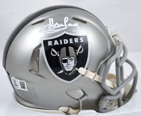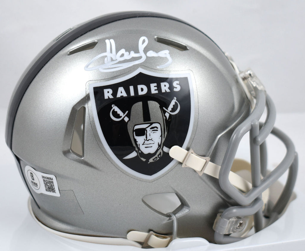 This is a hand autograph of Howie Long of the Raiders on a Riddell Football Flash Speed Mini Helmet. This item has a Beckett Witnessed Authentication, which comes with a numbered hologram and a QR code for verification. You can view this item on the Beckett Authentication website and it shows when and where the item was signed. It was signed either at a public autograph appearance or a private signing. This is a stock photo of the item. Although you may not receive this exact item, the item you receive is virtually identical and brand new in great shape. This is a hand autograph of Howie Long of the Raiders on a Riddell Flash Speed Mini Helmet. This item has a Beckett Witnessed Authentication, which comes with a numbered hologram and a QR code for verification. You can view this item on the Beckett Authentication website and it shows when and where the item was signed. It was signed either at a public autograph appearance or a private signing. This is a stock photo of the item. Although you may not receive this exact item, the item you receive is virtually identical and brand new in great shape.