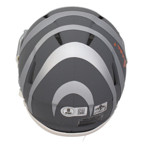 This Bengals Slate Riddell Speed mini helmet has been personally hand-signed by Ja'Marr Chase. This helmet includes a custom visor. It comes with an individually numbered, tamper-evident hologram from Beckett Authentic. To ensure authenticity, the hologram can be reviewed online. This process helps to ensure that the product purchased is authentic and eliminates any possibility of duplication or fraud.