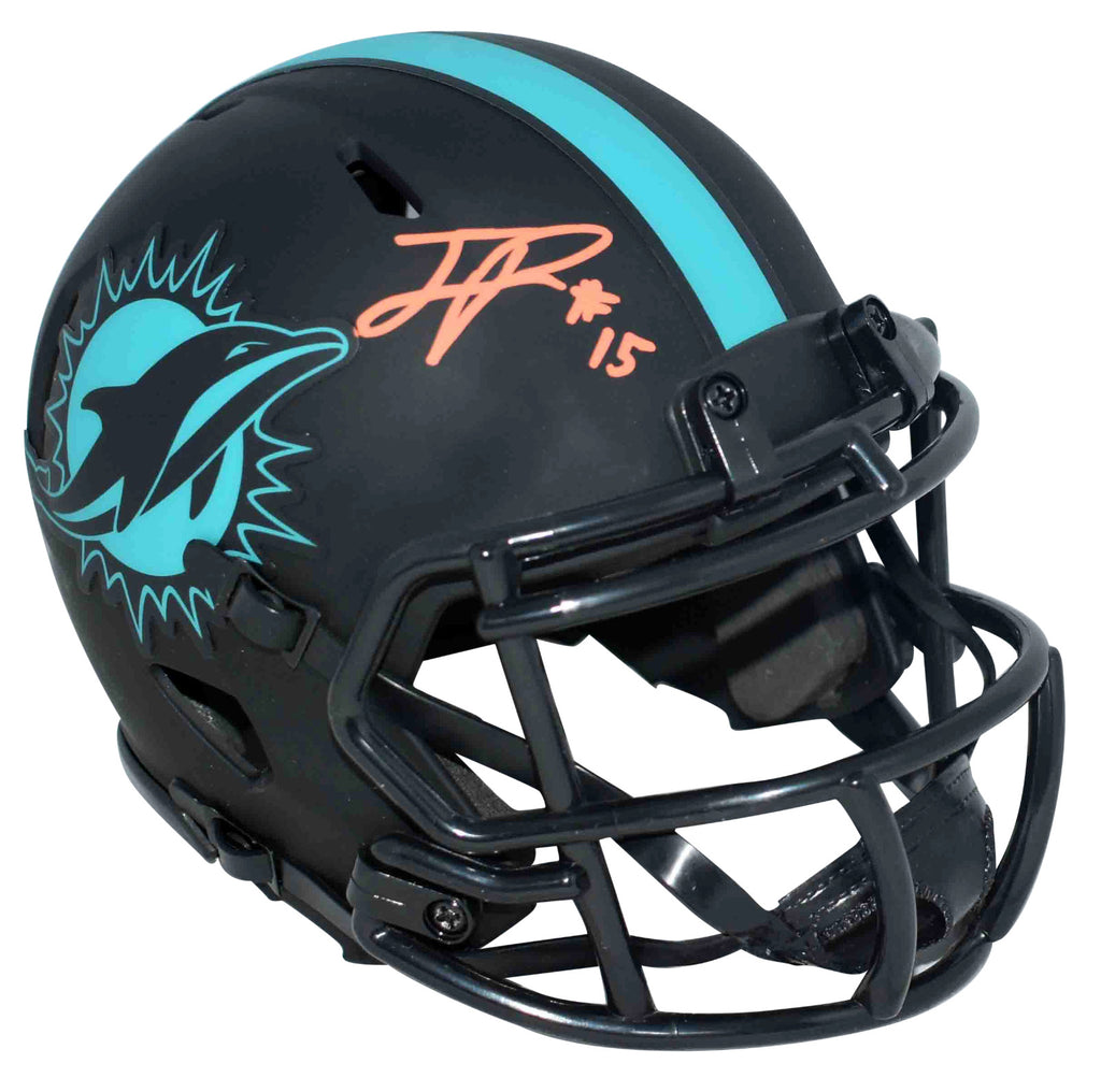 Jaelan Phillips, star linebacker for the Miami Dolphins, has hand signed this Dolphins Riddell Speed Eclipse mini helmet at a private signing. This item is authenticated by Beckett Authentication Services and was signed in the presence of one of their representatives. Their tamper-evident hologram featuring a QR code and serial number is on the item. The authenticity can be verified online by entering the serial number or scanning the QR code.Item pictured may not be the exact item you will receive. It will be similar quality, and we guarantee your satisfaction.
