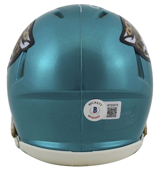 This Autographed Alternate Flash Speed Mini Helmet with the inscription of "HOF 22" has been Personally Signed by Tony Boselli of the Jacksonville Jaguars. This item is 100% Authentic to include a hologram by Beckett Authentication Services. This item may come with the new Beckett Authentication hologram that has a scannable QR code rather than the traditional COA. If you would like to have a COA, you are welcome to reach out to Beckett for a printed certification once you receive your item. This is a BAS Witnessed Protection Program item which means a Beckett Authentication Service representative was present when this item was being signed. We conducted an autograph signing with Tony Boselli where multiples of the same item were signed. While the photographs are representative of this item, the size, placement and strength of the signature may vary. Each item is hand signed, therefore, each autograph is unique. This item can be verified through BAS Witnessed.