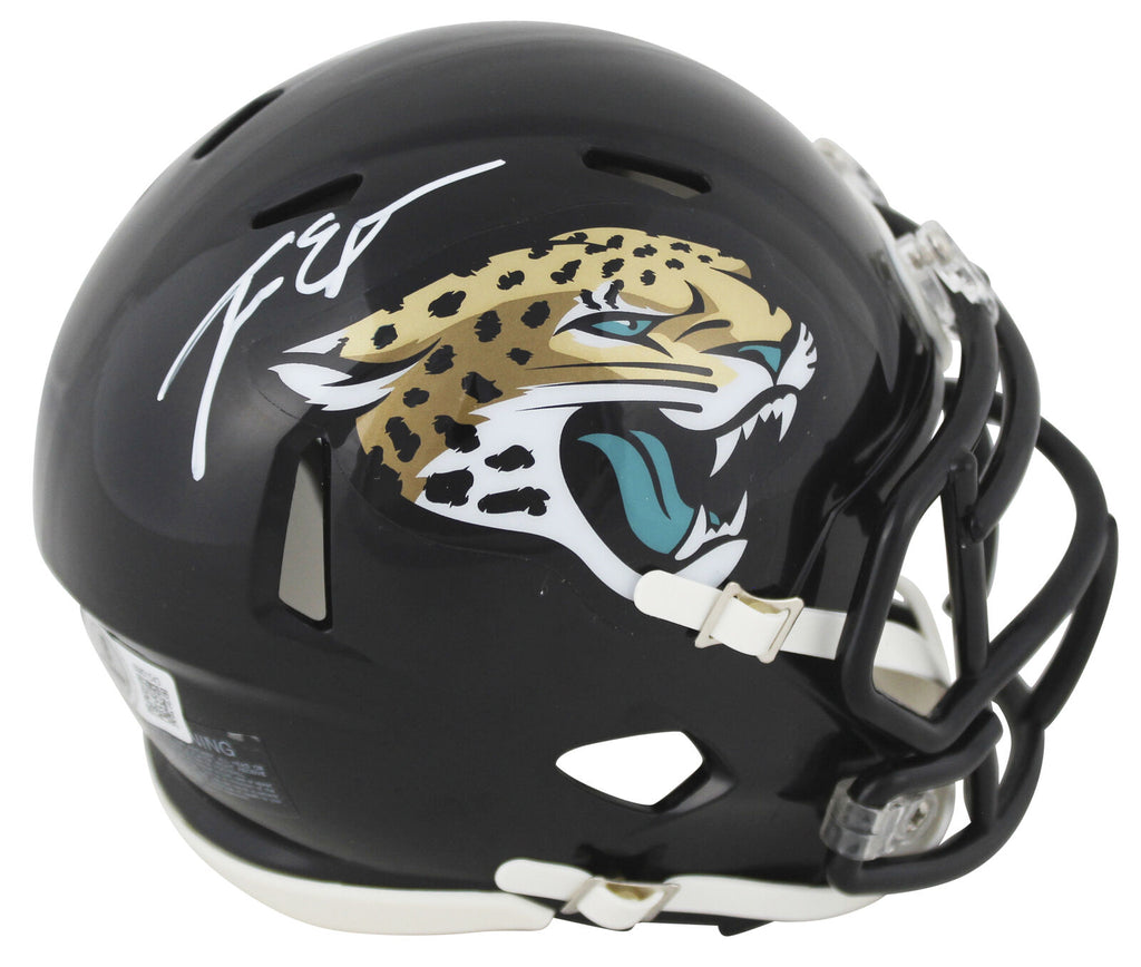 This Autographed Speed Mini Helmet has been Personally Signed by Travis Etienne Jr. of the Jacksonville Jaguars. This item is 100% Authentic to include a hologram by Beckett Authentication Services. This item will come with an affixed Beckett Authentication Services (BAS) authentication sticker, which includes a scannable QR code to verify authenticity. Please note that Beckett no longer provides serial-numbered COA cards, and the attached BAS sticker will serve as the complete authentication for this item. We conducted an autograph signing with Travis Etienne Jr. where multiples of the same item were signed. While the photographs are representative of this item, the size, placement and strength of the signature may vary. Each item is hand signed, therefore, each autograph is unique. This item can be verified through BAS.