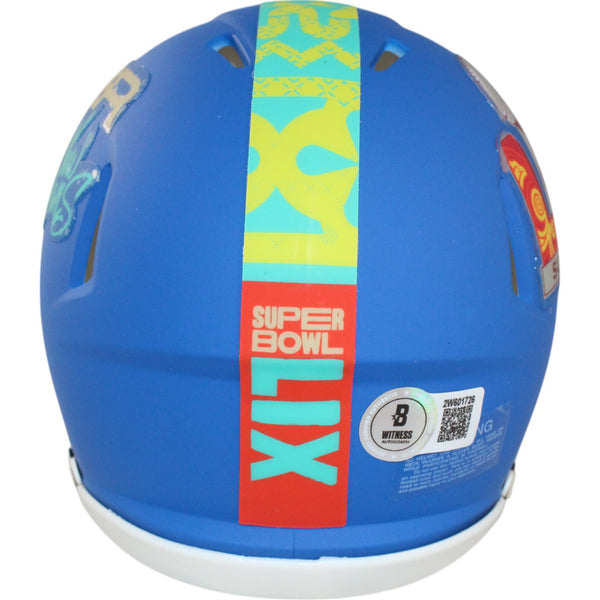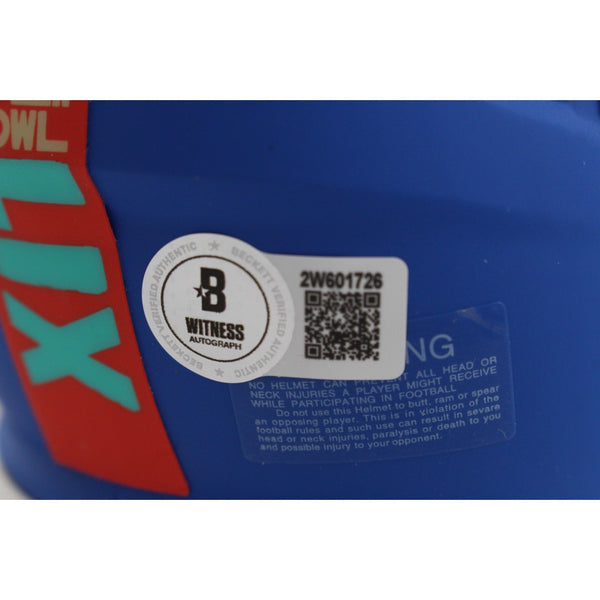 The number in the listing title is just an inventory sku for our records and is not the authentication number. This is a stock photo, unless otherwise noted. This is a Philadelphia Eagles Flat Royal Blue Super Bowl 59 Mini Helmet that was personally autographed by Jalen Carter. Includes a certificate of authenticity from Beckett Authentication Services (BAS) and Denver Autographs.