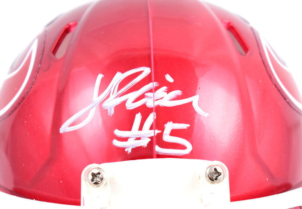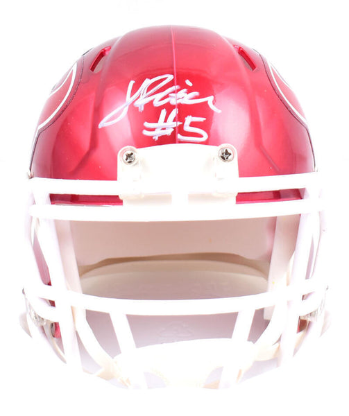 Jalen Pitre Autographed Houston Texans Flash Speed Mini Helmet-Beckett W Hologram *White This is a Hand Autographed Helmet of Jalen Pitre of The Houston Texans. This is a Riddell Football Flash Speed Mini Helmet. This item has a Beckett Witness Authentication, which Comes with a Beckett #'ed hologram and a QR code for verification. You can view this item on the Beckett website and it shows when and where the item was signed. It was signed either at a public autograph appearance or a Private Signing. This is a stock photo of the item. Although you may not receive this exact item, the item you receive is virtually identical and brand new in great shape.