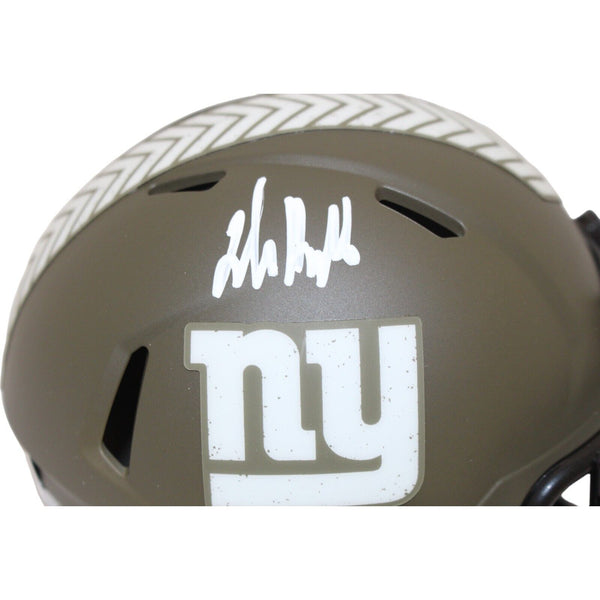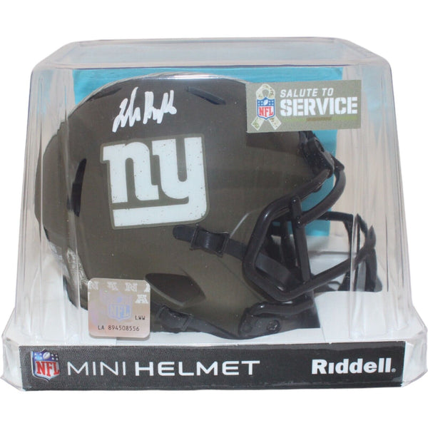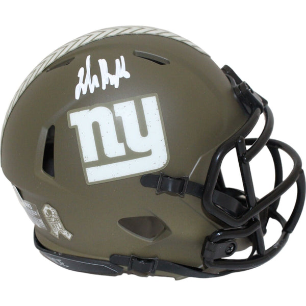 Jalin Hyatt Autographed/Signed New York Giants Salute Mini Helmet Beckett 43014 The number in the listing title is just an inventory sku for our records and is not the authentication number. The item pictured is a stock photo unless otherwise noted. This is a New York Giants 2022 Salute to Service Mini Helmet that was personally autographed by Jalin Hyatt. Includes a certificate of authenticity from Beckett Authentication Services (BAS) and Denver Autographs.