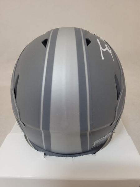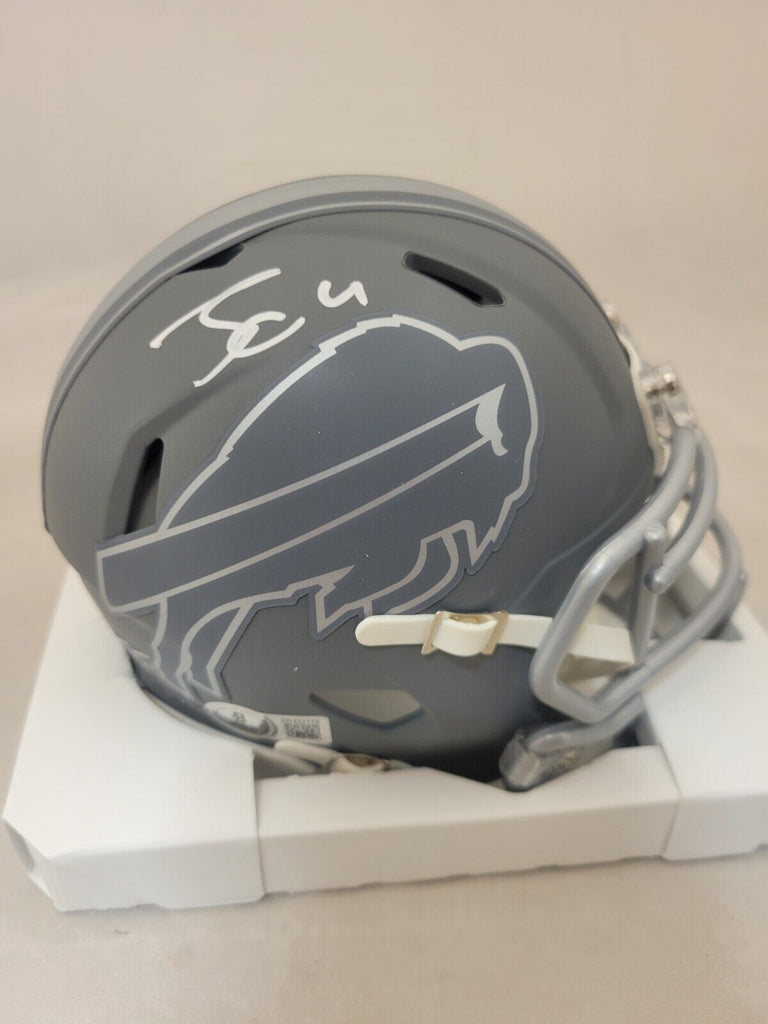 JAMES COOK AUTOGRAPHED BUFFALO BILLS SLATE SPEED MINI HELMET WITH BECKETT COATHIS MEANS THE HELMET WAS SIGNED WITH A BECKETT REPRESENTATIVE PRESENT SO YOU CAN BE 100% CERTAIN ITS THE REAL THING.