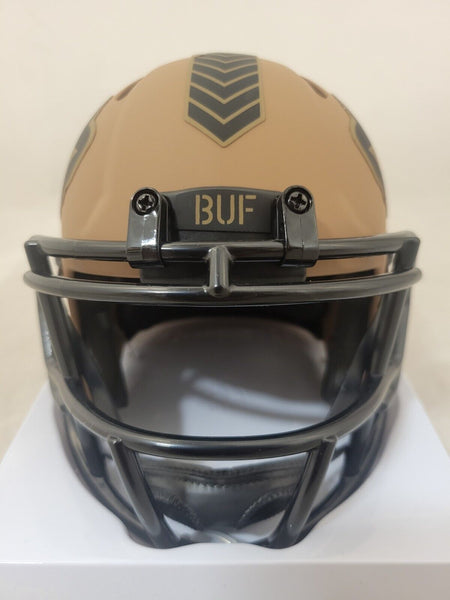 JAMES COOK AUTOGRAPHED BUFFALO BILLS SALUTE TO SERVICE (STS 2) SPEED MINI HELMET WITH BECKETT COATHIS MEANS THE HELMET WAS SIGNED WITH A BECKETT REPRESENTATIVE PRESENT SO YOU CAN BE 100% CERTAIN ITS THE REAL THING.