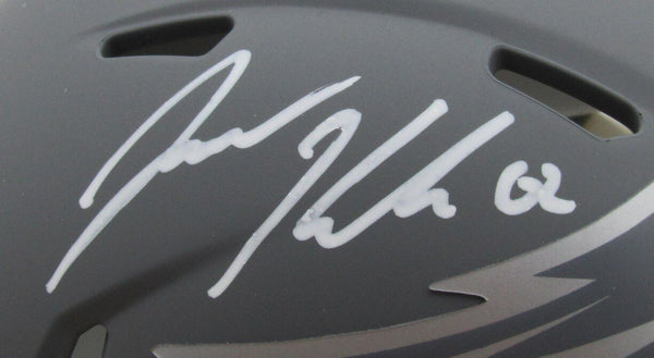 Jason Kelce Autographed Philadelphia Eagles Slate Mini Football Helmet. This mini helmet is authenticated by PSA/DNA and includes their In the Presence Tamper-proof Hologram Sticker. This mini helmet was autographed in the presence of a PSA/DNA representative.