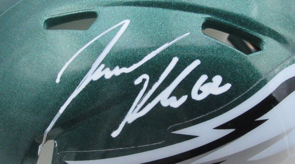 Jason Kelce Autographed Philadelphia Eagles Green Speed Mini Football Helmet. This mini helmet is authenticated by PSA/DNA and includes their In the Presence Tamper-proof Hologram Sticker. This mini helmet was autographed in the presence of a PSA/DNA representative.