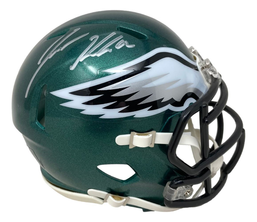 Featured is a Jason Kelce signed Philadelphia Eagles mini speed helmet. This helmet has been hand signed by Kelce and comes with the PSA witnessed hologram. This helmet would make a great addition to any sports memorabilia collection!. SPECIFICATIONS Autographed By: Jason Kelce Team: Philadelphia Eagles Sport: Football Authentication: Professional Sports Authenticator (PSA)