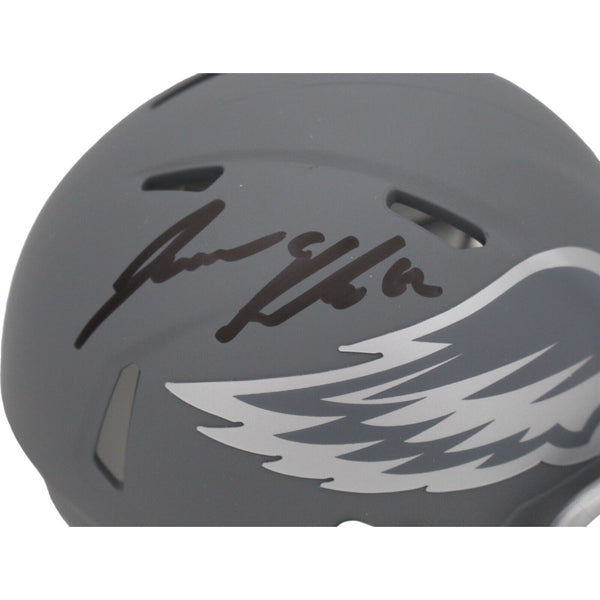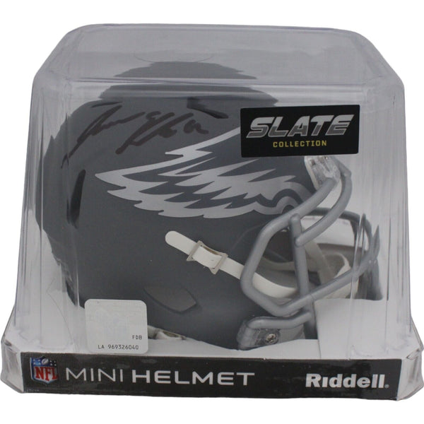 The number in the listing title is just an inventory sku for our records and is not the authentication number. The item pictured is a stock photo unless otherwise noted. This is a Philadelphia Eagles Slate Mini Helmet that was personally autographed by Jason Kelce. Includes a certificate of authenticity from Beckett Authentication Services (BAS) and Denver Autographs.