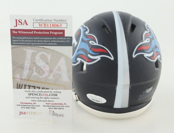 Riddell Tennessee Titans Speed mini helmet has been hand-signed by Jeffery Simmons.The autograph(s) includes an official James Spence Authentication (JSA) hologram and matching COA for authenticity purposes. The signing of this item was witnessed by JSA.Authentication: JSA COA