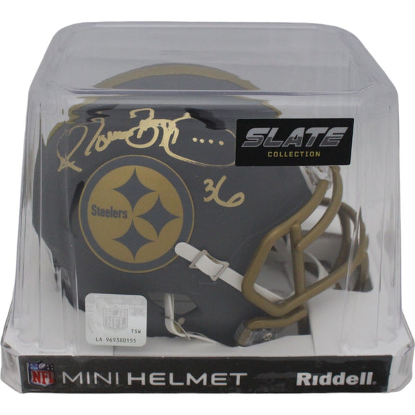 The number in the listing title is just an inventory sku for our records and is not the authentication number. The item pictured is a stock photo unless otherwise noted. This is a Pittsburgh Steelers Slate Mini Helmet that was personally autographed by Jerome Bettis. Includes a certificate of authenticity from Beckett Authentication Services (BAS) and Denver Autographs.FREE SHIPPING within the USA on orders over $10!