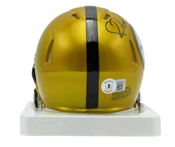 Jerome Bettis HOF Autographed Gold Flash Mini Football Helmet Pittsburgh Steelers. This helmet is authenticated by PROVA and includes their Tamper-proof Sticker.
