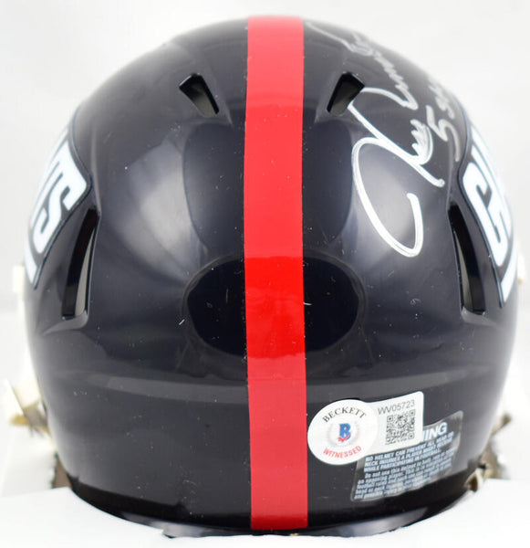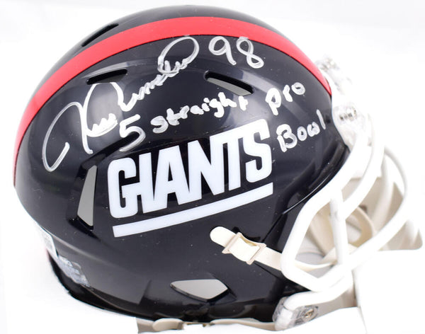 Jessie Armstead Autographed New York Giants 81-99 Speed Mini Helmet w/5 Pro Bowl - Beckett W Hologram *Silver This is a Jessie Armstead of the New York Giants hand autographed Riddell Football 81-99 Throwback Speed Mini Helmet. Inscribed 5 straight Pro Bowls. This item has a Beckett Witnessed Authentication, which comes with a numbered hologram and a QR code for verification. You can view this item on the Beckett Authentication website and it shows when and where the item was signed. It was signed either at a public autograph appearance or a private signing. This is a stock photo of the item. Although you may not receive this exact item, the item you receive is virtually identical, brand new, and in great shape.