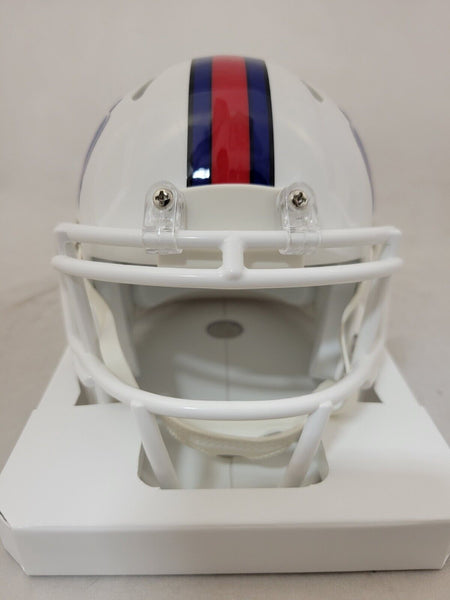 JIM KELLY AUTOGRAPHED BUFFALO BILLS SPEED MINI HELMET WITH BECKETT QR COATHIS MEANS THE HELMET WAS SIGNED WITH A BECKETT REPRESENTATIVE PRESENT SO YOU CAN BE 100% CERTAIN ITS THE REAL THING.